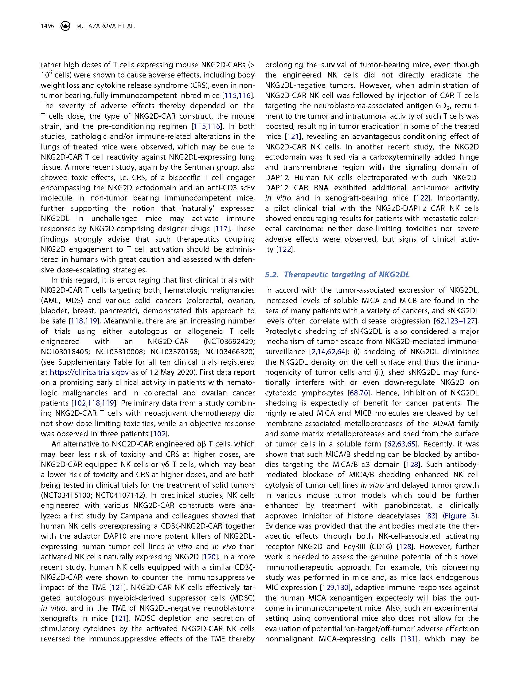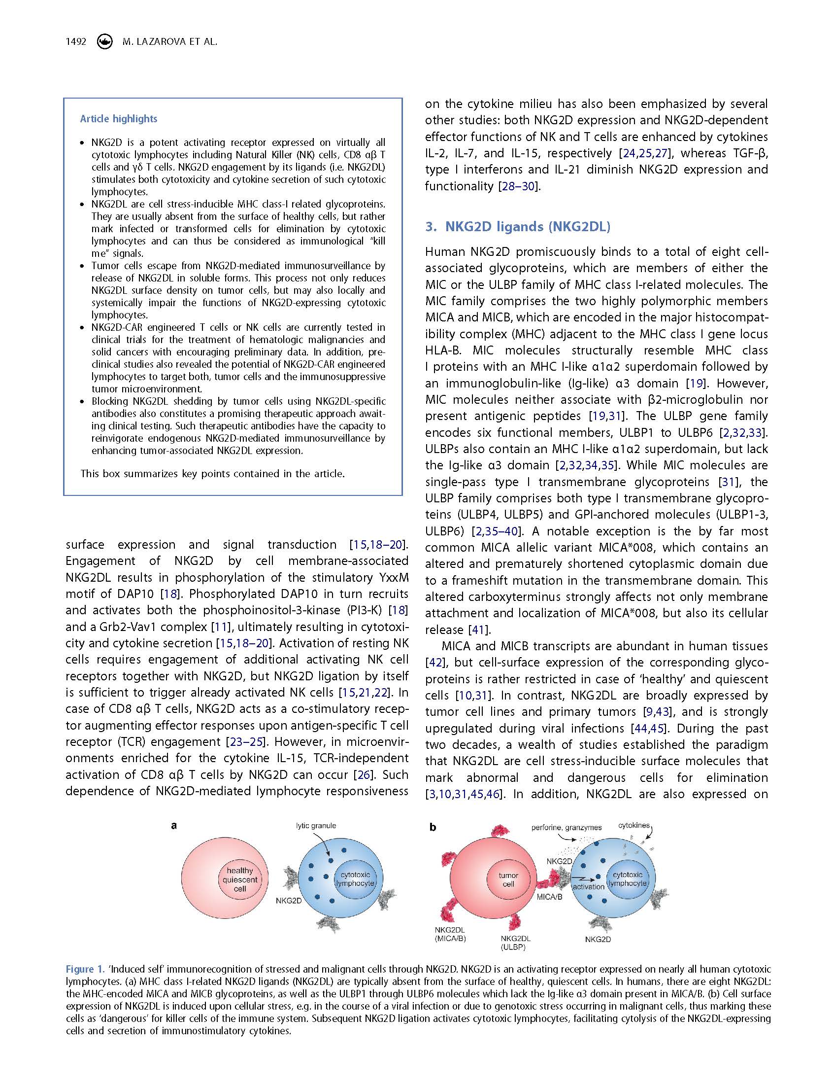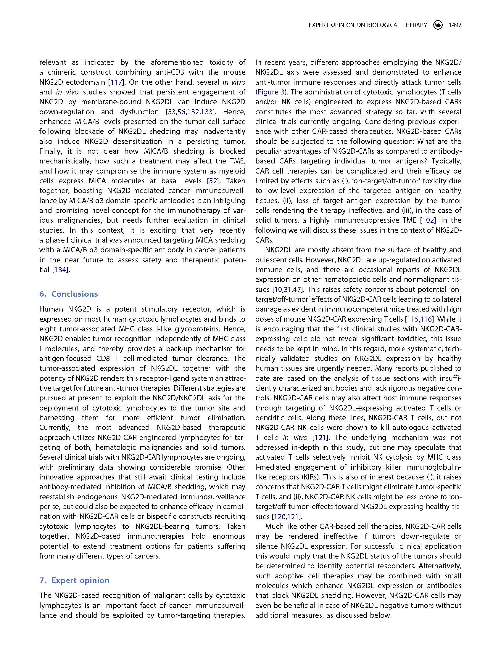 專家意見 Arming cytotoxic lymphocytes for cancer immunotherapy by means of the NKG2D/NKG2D ligand system